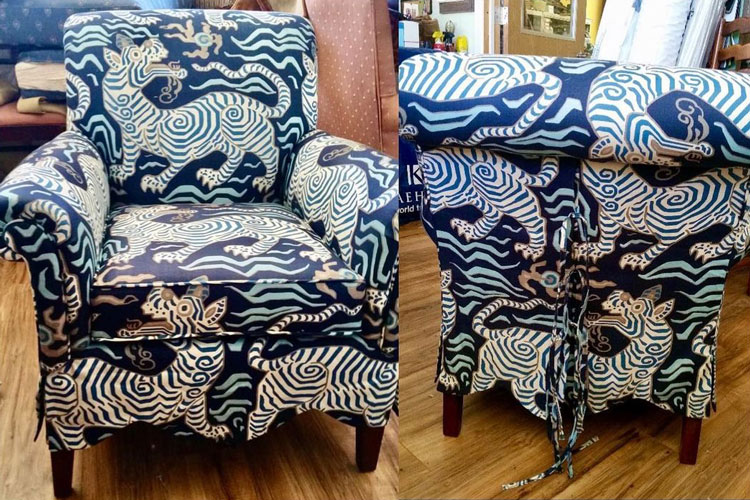 Spectacular work. Cesar and his daughter chatted with me about what I wanted, stayed in touch, used my own fabric without a COM charge and then went above and beyond with delivery, 2 week turn around and impeccable craftsmanship. Cesar made the slip cover out of my gold velvet, new seat and bolsters and I am very happy!!